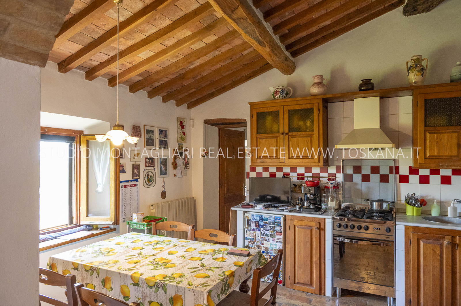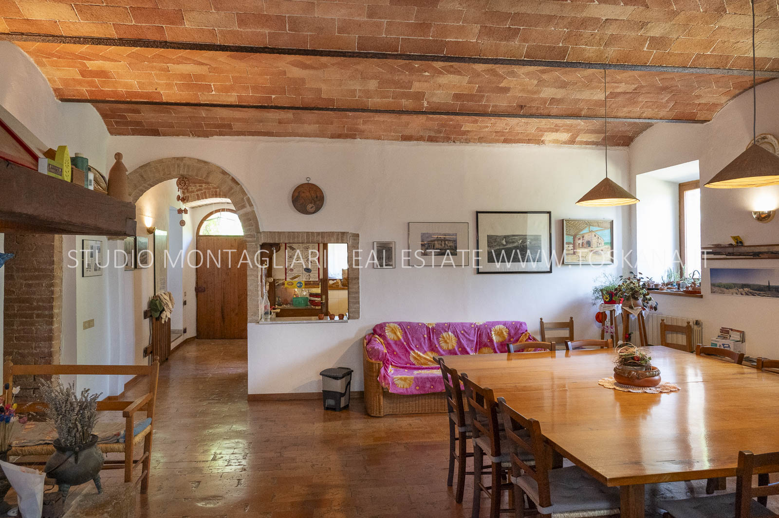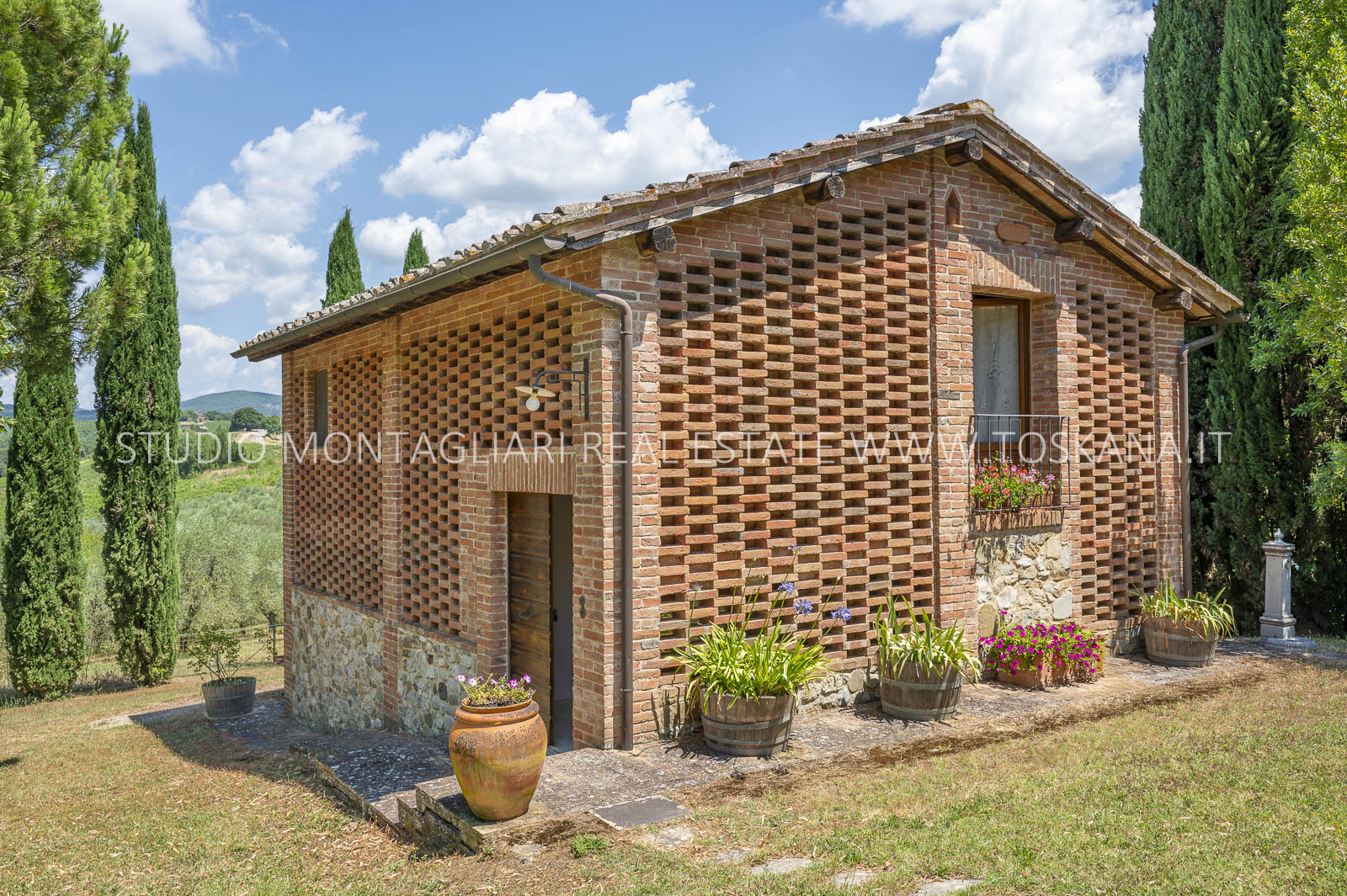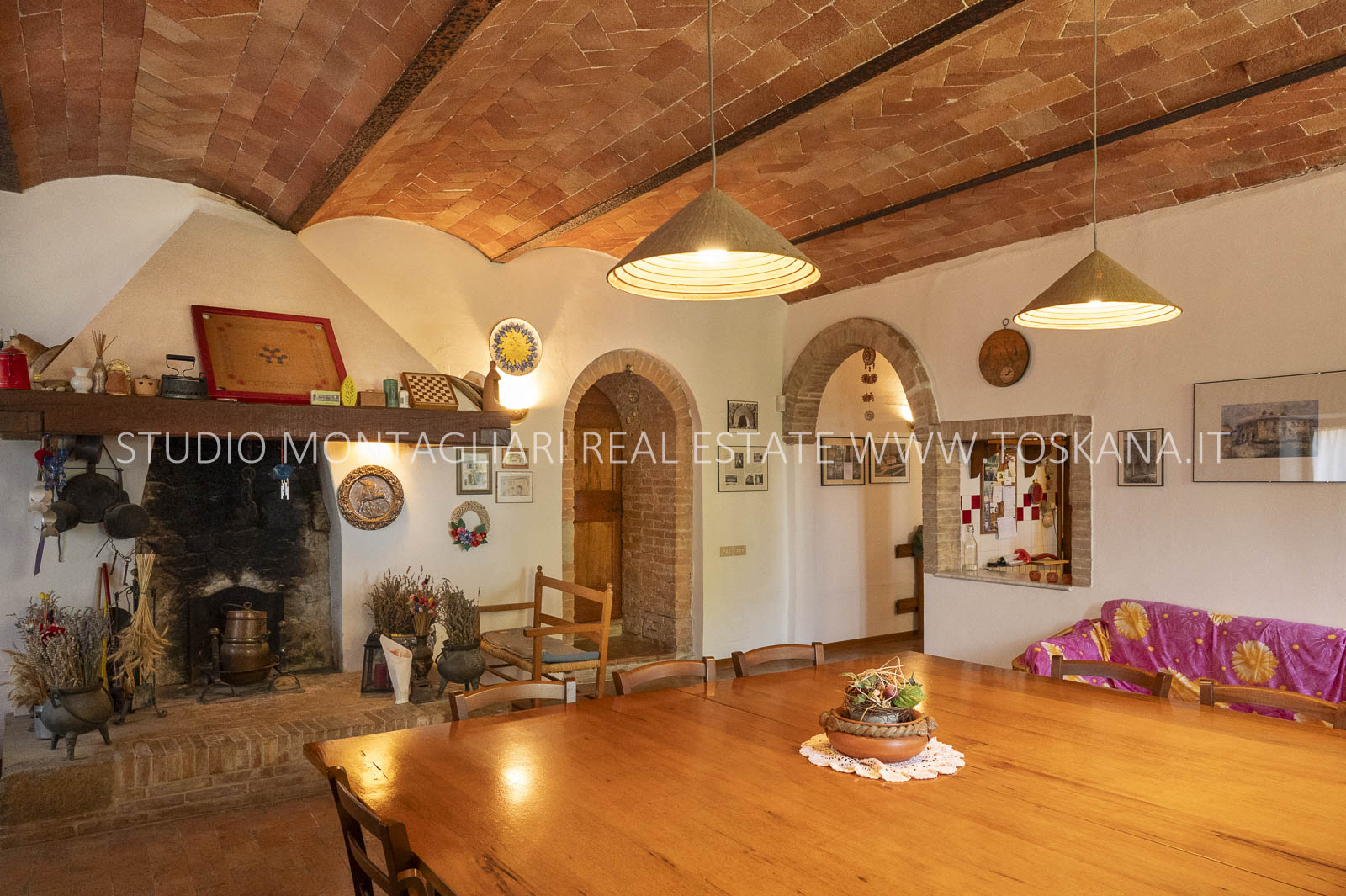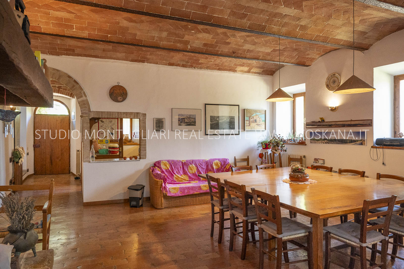 Un suggestivo viale di cipressi conduce al giardino e al casale principale. Al piano terra si trovano due magazzini e una limonaia con forno a legna, mentre l’ingresso principale si apre su un ampio soggiorno con camino e cucina, accompagnato da un disimpegno con lavanderia e bagno. Le scale interne originali conducono al piano superiore, dove sul lato sinistro si trovano quattro camere da letto e due bagni, mentre il lato destro consiste di un appartamento con soggiorno, cucina, tre camere da letto e un bagno. Un piccolo e affascinante cortile collega il casale principale a un delizioso annesso con ingresso indipendente, composto da una camera da letto e un bagno. Nel fienile, al primo piano, si trova un ulteriore appartamento composto da soggiorno con angolo cottura, due camere da letto e un bagno. Invece al piano terra di questo edificio è presente un ampio magazzino/garage per le attrezzature agricole. Accanto all’edificio principale, un capannone ad uso garage completa gli edifici. ù