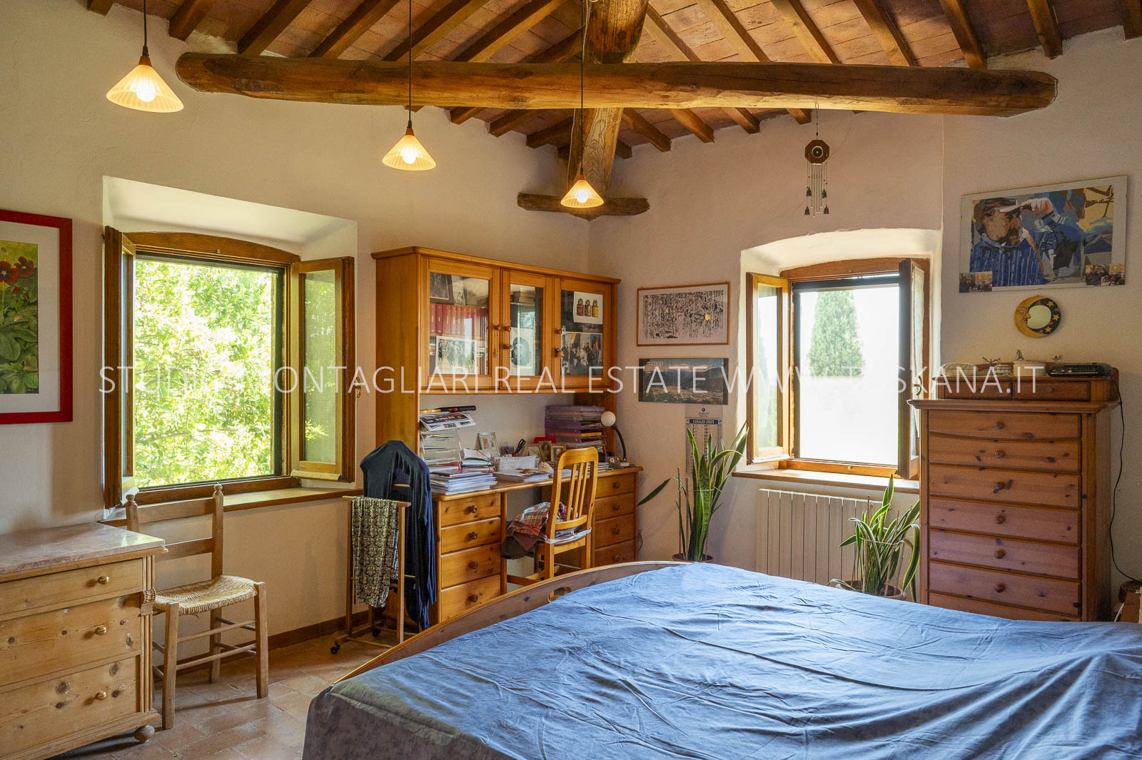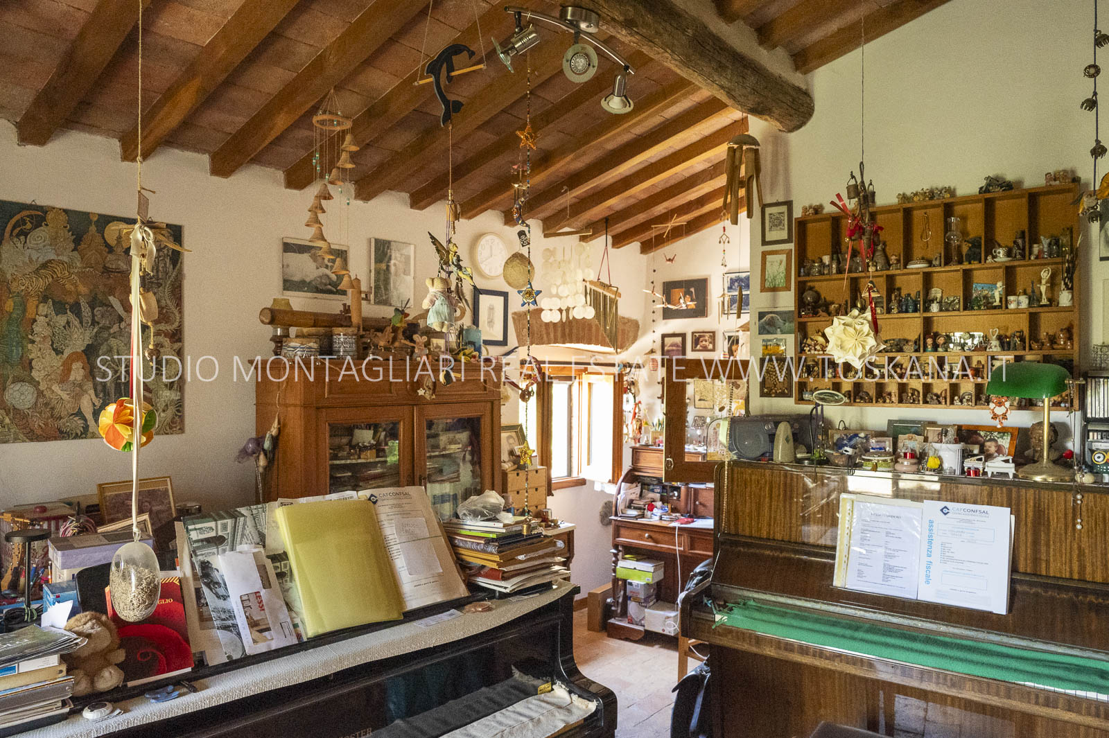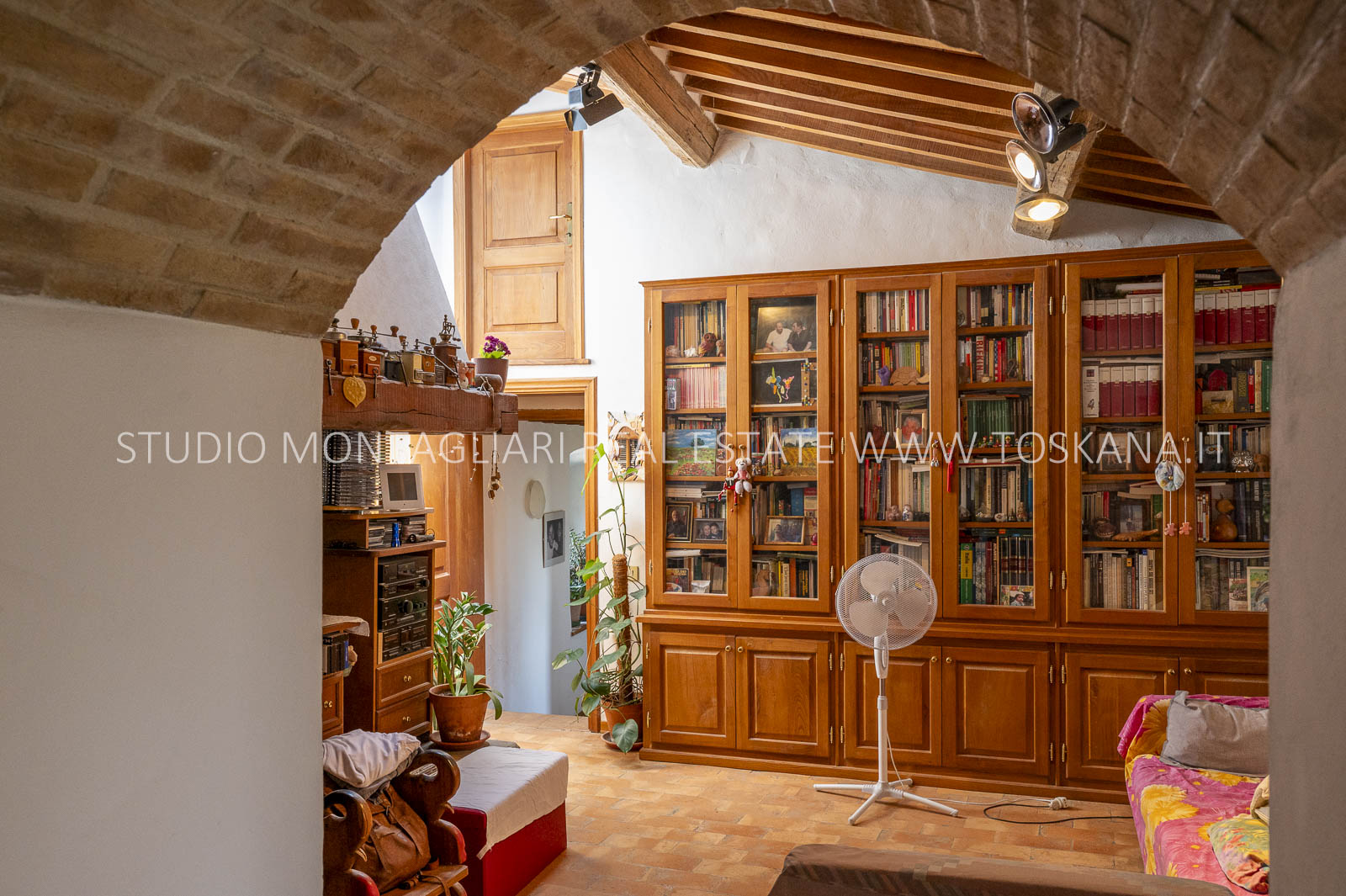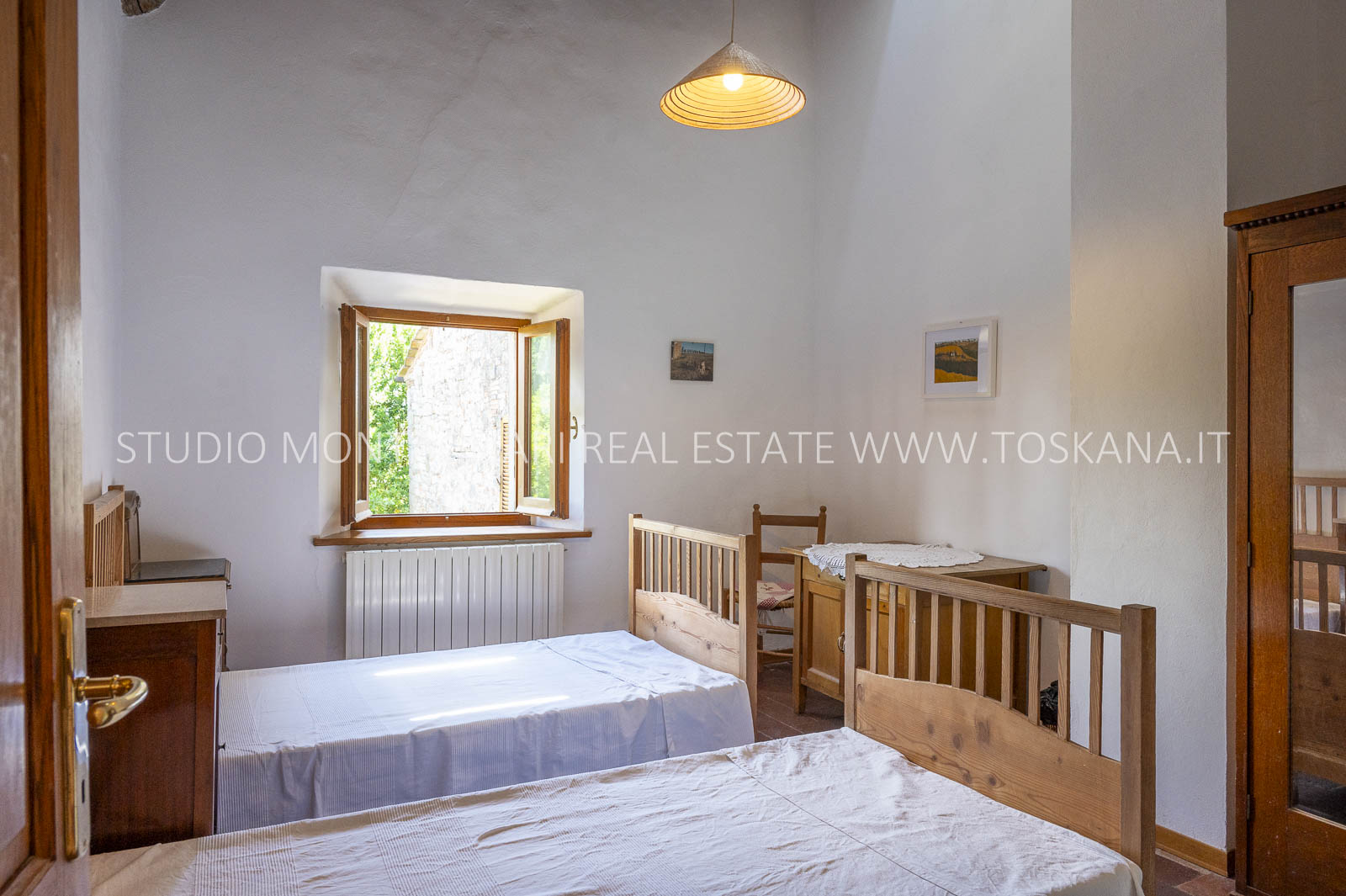 Un suggestivo viale di cipressi conduce al giardino e al casale principale. Al piano terra si trovano due magazzini e una limonaia con forno a legna, mentre l’ingresso principale si apre su un ampio soggiorno con camino e cucina, accompagnato da un disimpegno con lavanderia e bagno. Le scale interne originali conducono al piano superiore, dove sul lato sinistro si trovano quattro camere da letto e due bagni, mentre il lato destro consiste di un appartamento con soggiorno, cucina, tre camere da letto e un bagno. Un piccolo e affascinante cortile collega il casale principale a un delizioso annesso con ingresso indipendente, composto da una camera da letto e un bagno. Nel fienile, al primo piano, si trova un ulteriore appartamento composto da soggiorno con angolo cottura, due camere da letto e un bagno. Invece al piano terra di questo edificio è presente un ampio magazzino/garage per le attrezzature agricole. Accanto all’edificio principale, un capannone ad uso garage completa gli edifici. ù