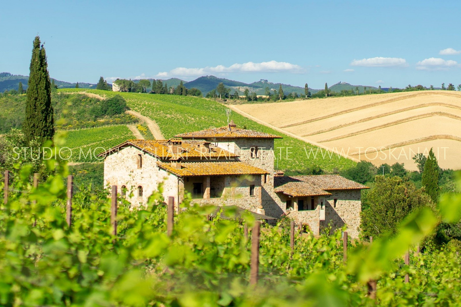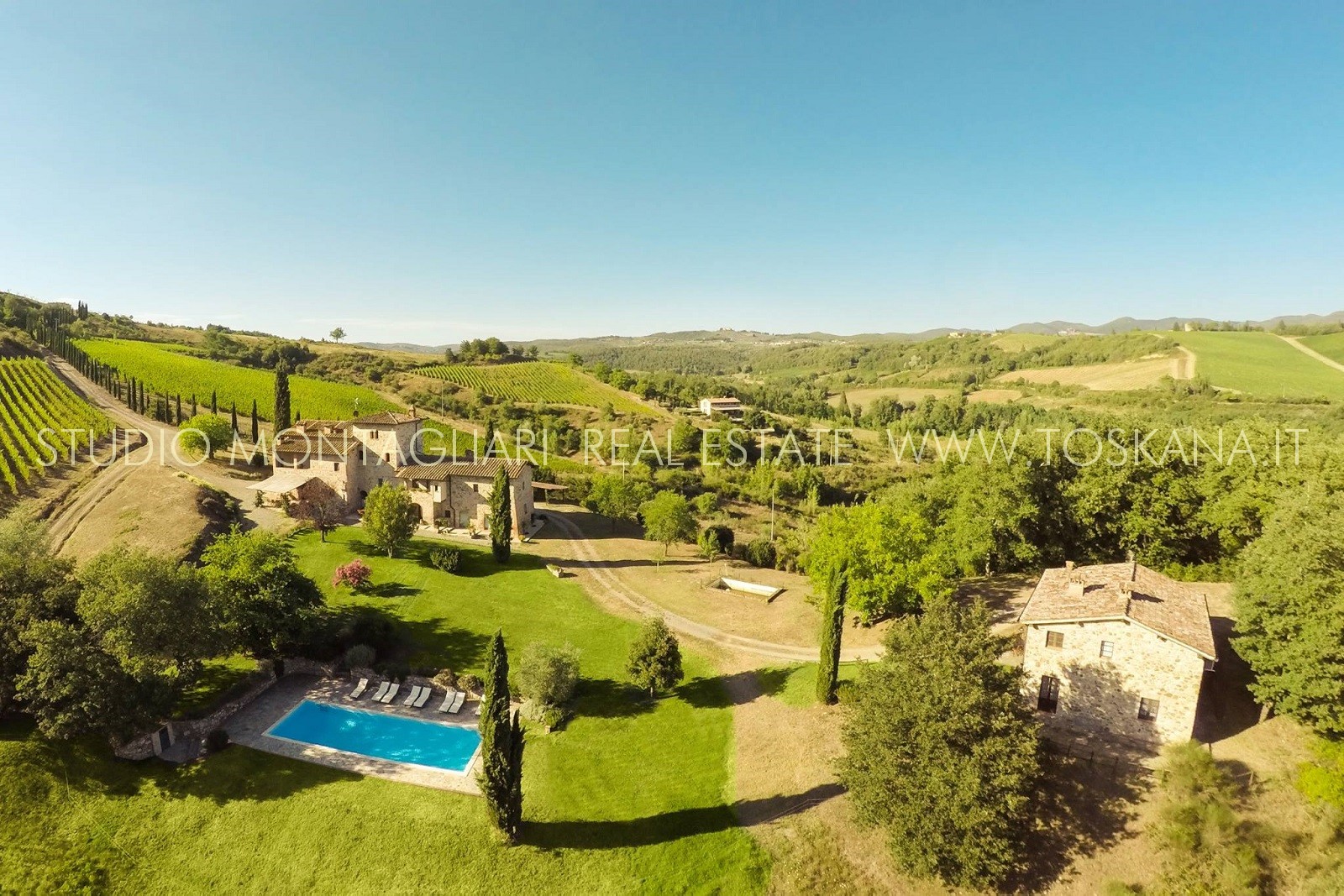Il terreno, di complessivi 26 ettari è composto da 5,6 ha di vigneto IGT, uliveto e bosco. Attualmente è stato dato in lavorazione a terzi ma vi è la possibilità di costruire la propria cantina.
