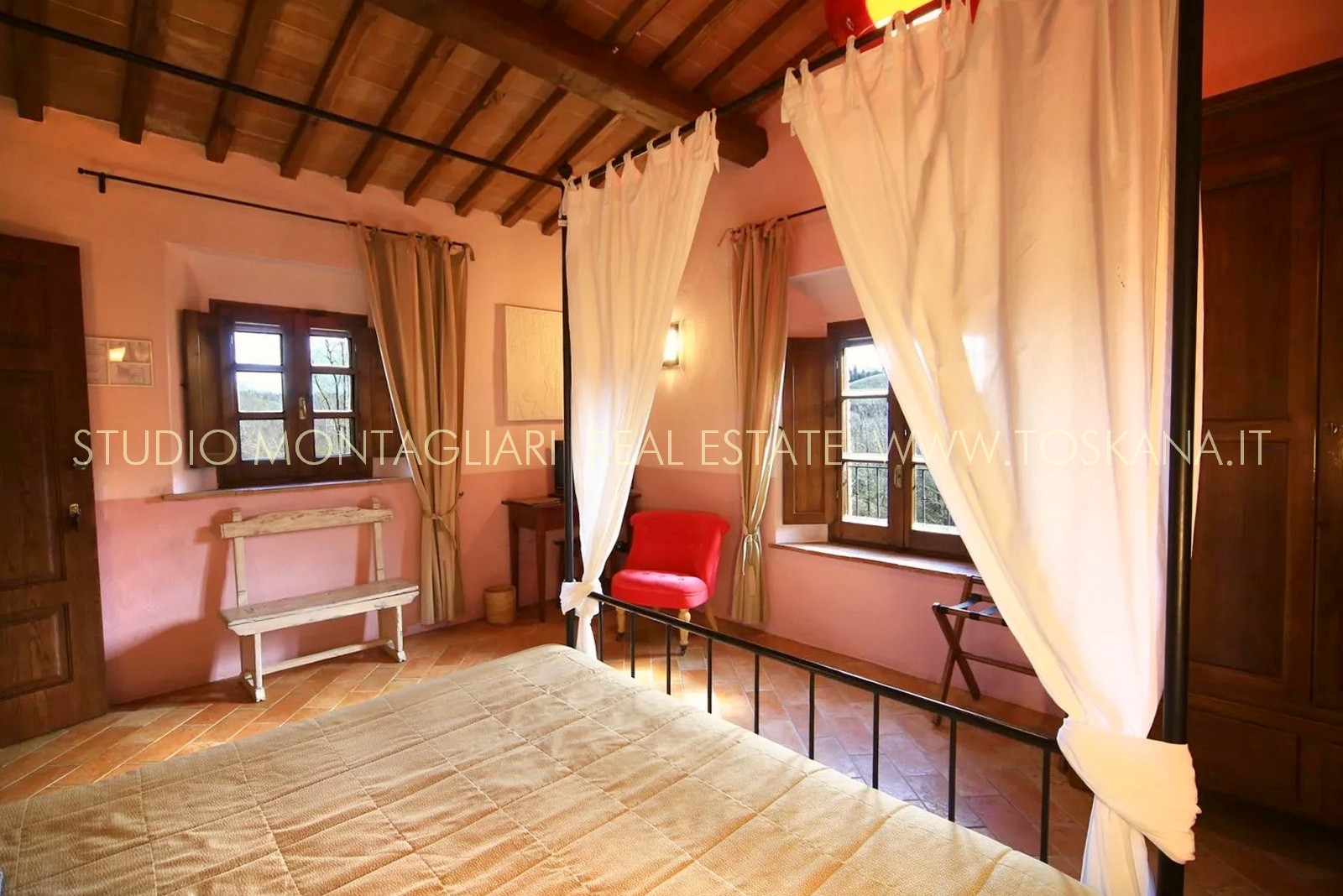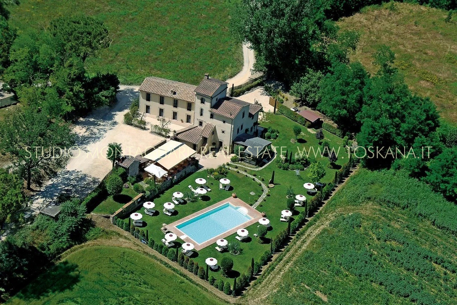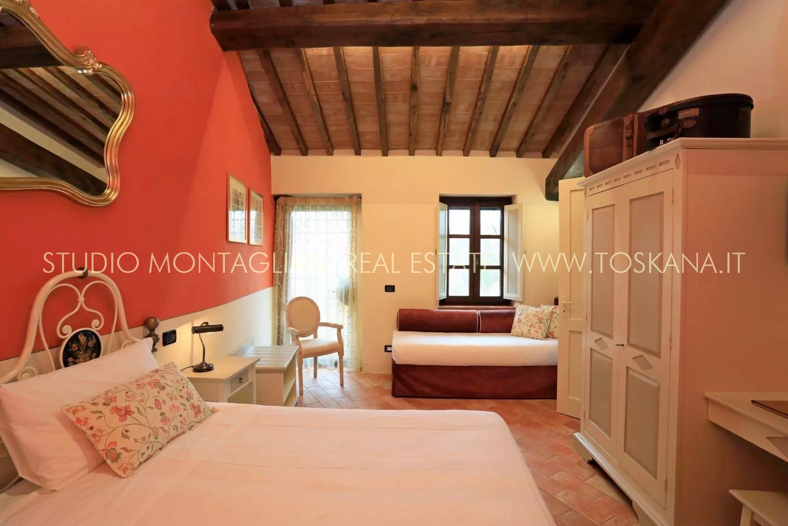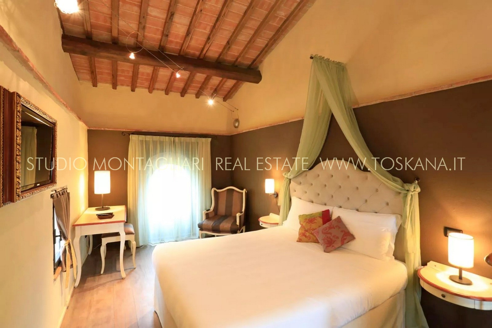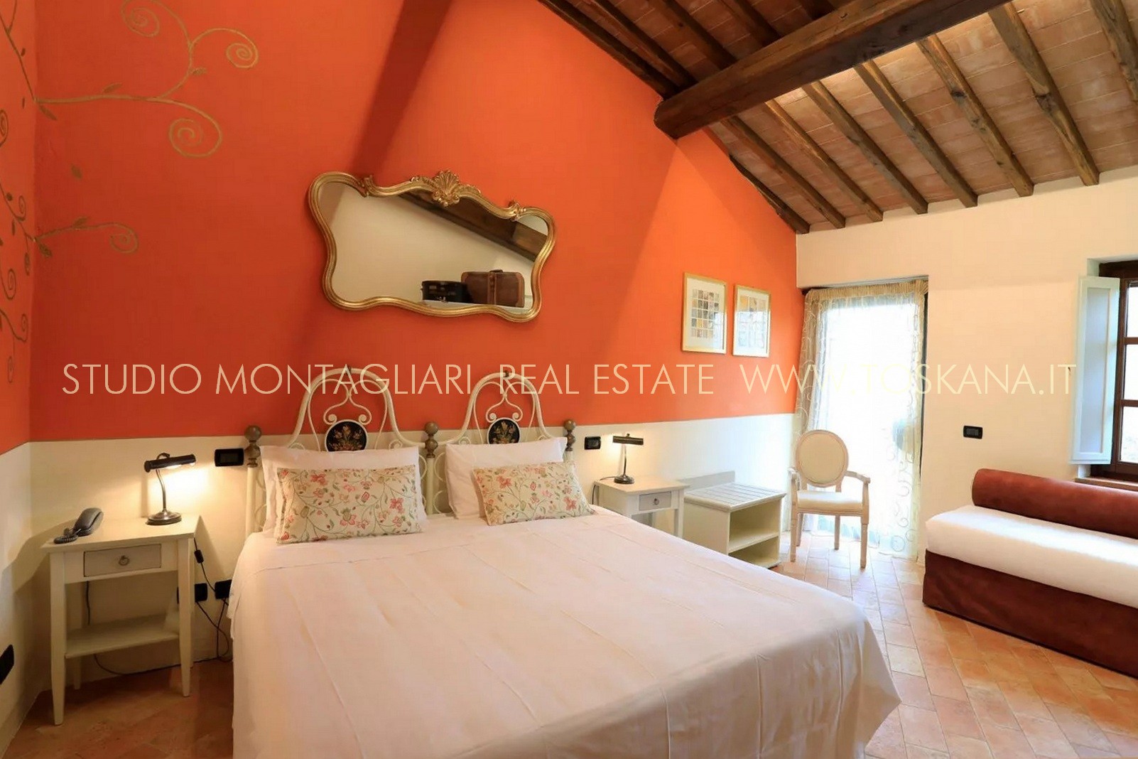 La superficie abitabile di circa 650 mq si sviluppa su tre livelli. L’hotel dispone di 16 camere e di 19 bagni. Ogni ambiente combina stile e comfort pratico, riflettendo l'eredità dell'edificio attraverso elementi quali travi in legno a vista, pavimenti in cotto e viste panoramiche sull'idilliaco paesaggio toscano. La veranda per la colazione con ampie vetrate permette agli ospiti di godere della vista sul verde curato e sulla piscina durante i pasti. La proprietà dispone inoltre di una cucina professionale, un' area lounge e un ufficio reception, garantendo al visitatore un'ospitalità impeccabile.